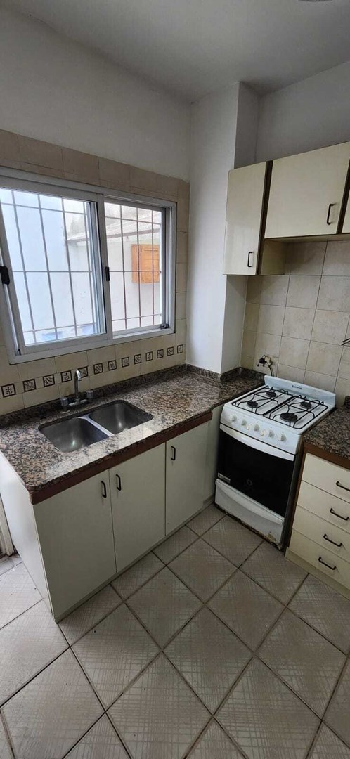 DEPARTAMENTO DE TRES AMBIENTES CON GARAGE en plento centro de Avellaneda a tres cuadras de la Av. Mitre y a cinco minutos de CABA. Consta de LIVING COMEDOR con piso de cerámicos - COCINA con muebles altos y bajos mesada, con COMEDOR DIARIO chico - HALL DE DISTRIBUCIÓN - DOS DORMITORIOS (uno de ellos con placard) y piso de cerámicos - BAÑO con sanitarios y accesorios completos y receptáculo de ducha - LAVADERO semicubierto. Posee acceso por la calle Sarmiento al GARAGE DESCUBIERTO con portón manual, utilizado también como PATIO . Cuenta con todos los servicios